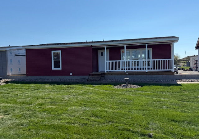 The Warren (#4) is 32 x 56, 1,680 SQFT with 3 bedrooms, 2 bathrooms. This home features a large, spacious kitchen and living area, along with a large walk- in closet! This home was manufactured by Ritz-Craft Homes. This home also includes dormers on the front of the home adding so much character!