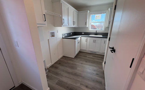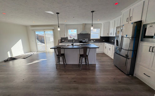 Farmhouse (#8) is a modular home that is 28 x 60, 1600 SQFT! This home is a show stopper with black windows and doors, snap together LVP flooring and thinscape counter tops!